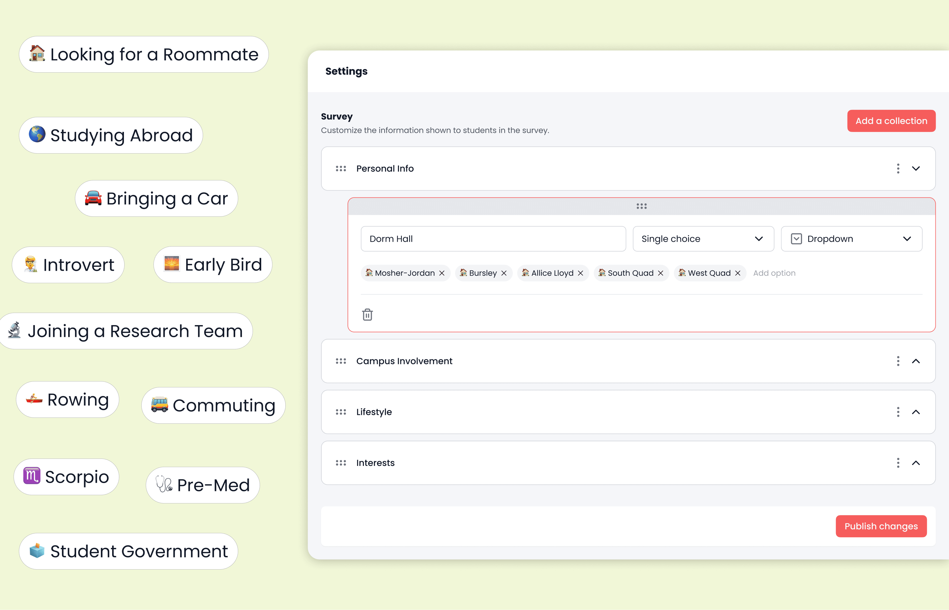Adjust the traits students can select when creating their profiles and when creating queries on the Student Directory